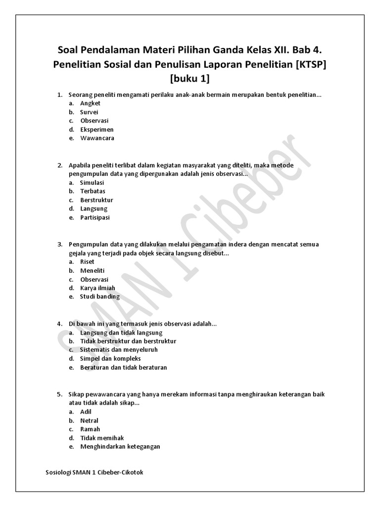 1 Soal Pendalaman Materi Pilihan Ganda Kelas Xii Bab 4 Penelitian Sosial Dan Penulisan Laporan Penelitian Ktsp Buku 1