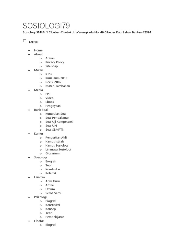 Sosiologi sman 1 cibeber cikotok jl. Globalisasi dan Perubahan Komunitas Lokal 2015-12-15T1021030000 sosiologi SMA No Comment A. Selain itu terkadang ada soal UN Sosiologi nggak ada hubungannya sama sekali dengan Sosiologi.